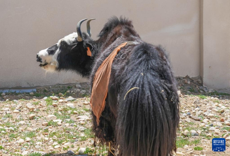 7月11日,在西藏(當(dāng)雄)金絲野牦牛繁育基地,工作人員給克隆牦牛檢查身體。新華社記者晉美多吉攝??