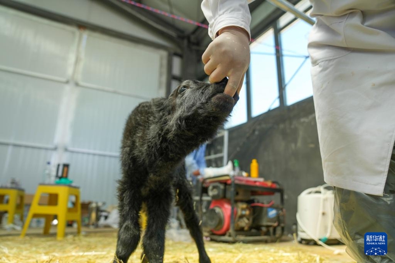 記者7月11日從西藏(當(dāng)雄)金絲野牦牛繁育基地了解到,10日中午12時(shí)40分,該基地剖腹誕生了第一頭克隆牦牛。這頭新出生的克隆牛犢個(gè)頭比正常新生牛犢較大,全身通黑,能夠正常行走,目前身體狀況良好。