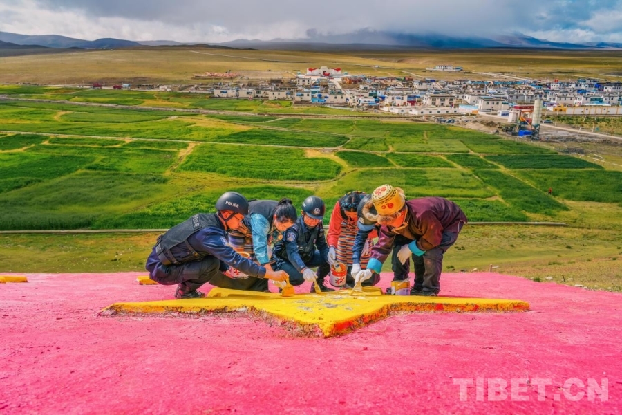 中國西藏網(wǎng)訊國慶節(jié)前夕,西藏邊檢總站日喀則邊境管理支隊崗巴邊境派出所民警攜手轄區(qū)群眾,共赴中印邊境吉汝村為國旗和黨旗描紅,以行動獻禮國慶。(中國西藏網(wǎng)通訊員/葉軼記者/趙振宇)