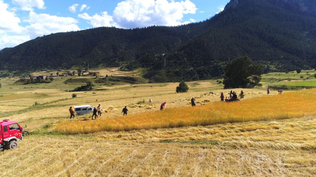 午后,當(dāng)你走進(jìn)普通的小村莊,就會(huì)目睹秋收的忙碌景象。村民們正在收割青稞,金色的青稞穗在陽(yáng)光下閃閃發(fā)光。男人們揮舞著鐮刀,女們則忙著捆扎。盡管勞作辛苦,他們的臉上卻洋溢著收獲的喜悅。